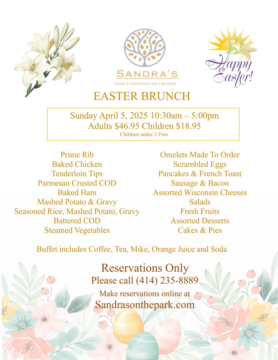 Sandras is the perfect romantic spot for your valentine celebration. We will be featuring a special menu designed for the special day.